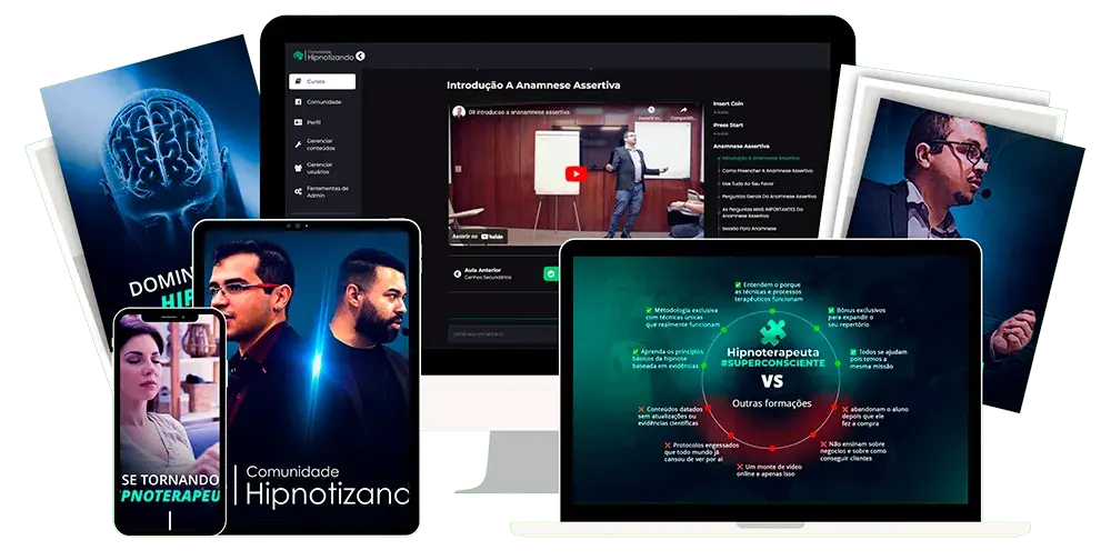 A Comunidade Hipnotizando é nossa plataforma por assinatura com nossos cursos avançados de Hipnose, onde você terá tudo que precisa para se tornar um Hipnoterapeuta profissional, e como usar a hipnose para melhorar a própria vida ou ajudar pessoas de maneira informal.